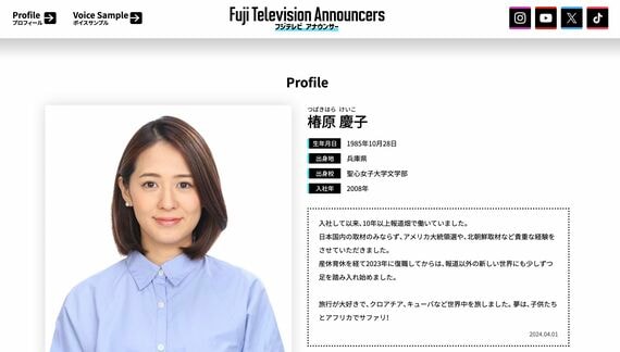 人気や知名度は高くても、“辞めどき”を過ぎたアナウンサーは、“居心地のよいフジテレビ”に居続ける。戸部洋子のように異動してアナウンサーではなくなっても、局に居続ける例もある。その点で、39歳の椿原の退社には意外性がある。