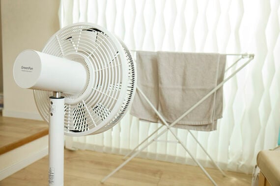 さらにThe GreenFanは風が広がり均一に当たるため、早く乾くと感じた。最大15メートル先まで風が届くため、サーキュレーター仕様として風量も申し分ない。