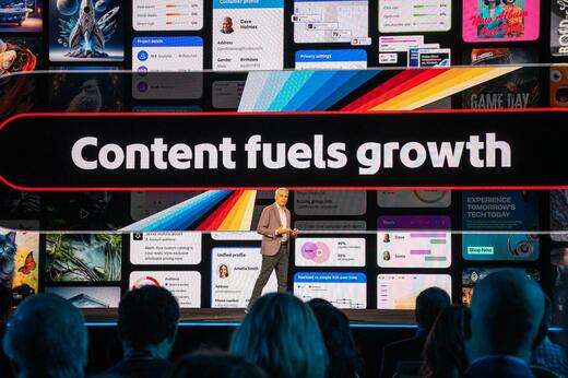 アドビ・デジタルメディア事業部門代表のデイビッド・ワドワーニ氏は、基調講演の中で「Content fuels growth(コンテンツが成長の燃料となる)」「Personalization at Scale(パーソナライズの拡大)」というキーワードを使った。