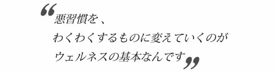 石川 ウェルネスの本質を考えながら試行錯誤するしかないと思います。1日をふり返ったとき、思い浮かぶ悪習慣がありますよね。それを少しずつわくわくするものに変えていくのが、ウェルネスの本質なんですよ。