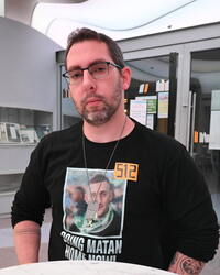 広場に面する図書館が人質家族の控室となっており、そのホールで、2月1日にいとこのオファ・カルデロンさん(54歳)が解放されたエヤル・カルデロン(40歳)さんの話を聞いた。
