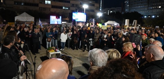 テルアビブ中心部の美術館前広場は、テロ攻撃以降、人質の早期解放を求める集会の開催場所となり「人質広場」と呼ばれている。この広場で毎週土曜日(イスラエルの休日)午後8時から開かれる集会を、3月1日に取材した。