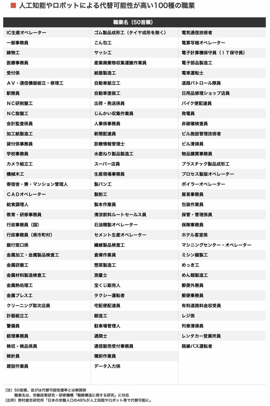 キャリア・教育 ホテル客室係やタクシー運転者の仕事は消滅しなかった…10年前の「AIに代替される職業・代替されない職業リスト」が現実には"真逆になった"納得のワケ 14分で読める 公開日時:2025/03/29 10:00 鈴木 貴博 経済評論家、百年コンサルティング代表 フォロー 1/9 PAGES 2/9 PAGES 2015年に予測された代替可能性が高い職業 画像を拡大 次ページが続きます 3/9 PAGES 4/9 PAGES 5/9 PAGES 6/9 PAGES 7/9 PAGES 8/9 PAGES 9/9 PAGES