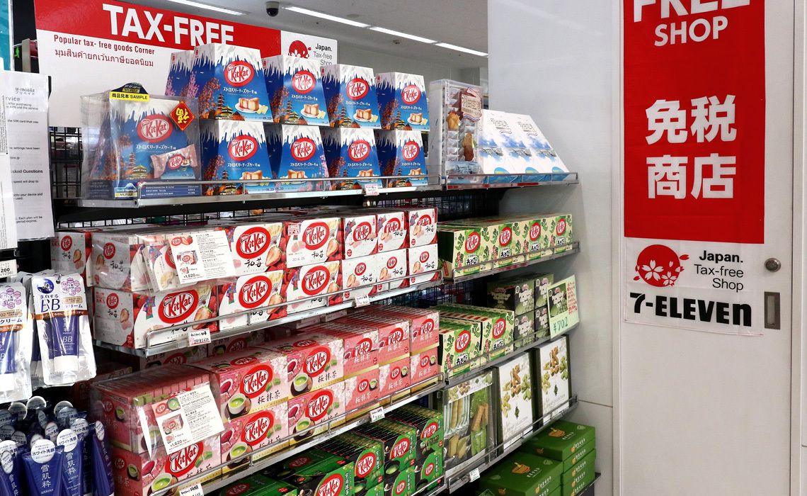 どこから見てもセブン-イレブンの店舗なのだが、店頭にズラリと並んでいるのは箱詰めの「キットカット」。これが飛ぶように売れている。ほんの数分見ていただけで4~5人が買っていった。購入したのは、いずれも外国人だ。