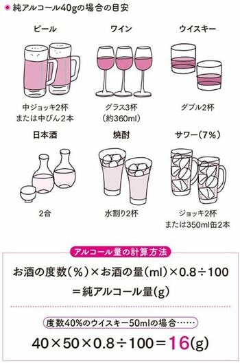 つまり、遺伝的にお酒に強い人は「適量」も多くなるし、遺伝的にあまり強くない人は「適量」を少なめにしたほうがいいということ。ですから、自分のタイプをちゃんと自覚したうえで、「自分にとってのアルコールの適量」をつかむようにしていくといいでしょう。