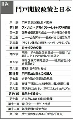 米国の理念による国際社会とのかかわりと、欧米から一歩遅れて国際社会に登場した日本の国際秩序へのかかわりを、公文書や関係者の発言にあたうかぎり触れながら、くっきりと描き出している。通底するのは、どの国の利益にもつながる交易の自由としての「門戸開放」である。