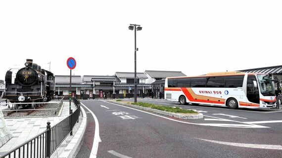 駅の西に位置する「津山まなびの鉄道館」には扇形機関車庫と転車台が保存されている。現存する扇形機関車庫としては京都の梅小路に次いで2番目の規模という。D51形蒸気機関車やキハ181形気動車など、歴史を彩ったさまざまな車両を展示。津山が「鉄道のまち」であることを表している。