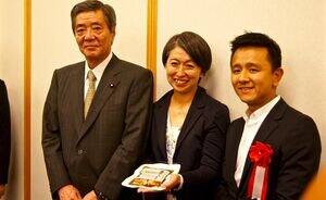 品評会の会場では小泉大臣政務官もブースに立ち寄り、「僕の家にも置いてあって、いつも食べている。この商品は販路開拓に成功しているね」と太鼓判を押した。
