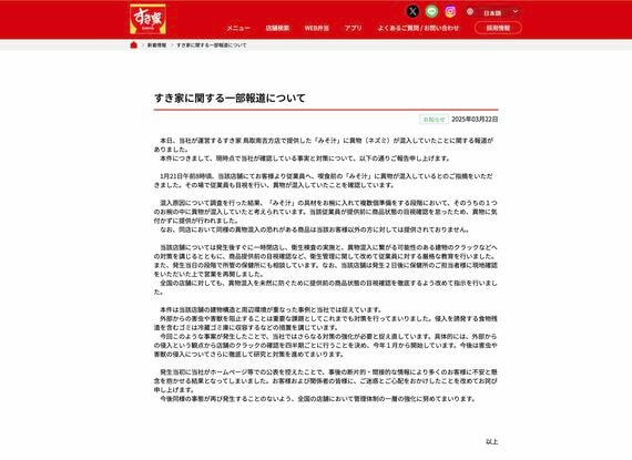 相次ぐ異物混入による大手牛丼チェーン「すき家」の一時全店閉店の報道を受けて、異物混入が同社の信用失墜を意図して仕組まれたとする陰謀説がSNSで急激に広まっている。