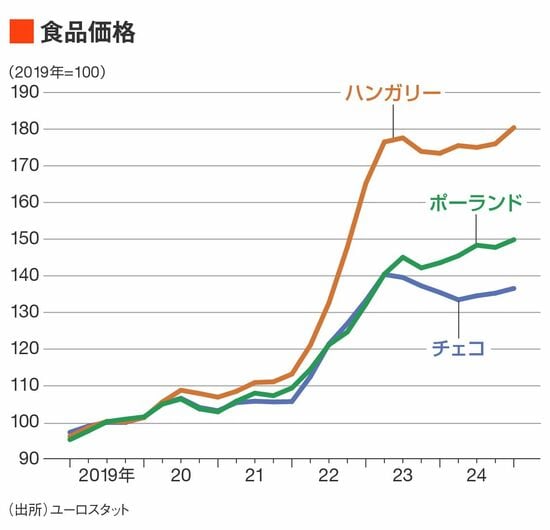 実際、ハンガリーの食品価格は値上がりが激しい。コロナショック前の2019年を基準(=100)とする消費者物価ベースの食品価格は、2024年末には180に至った。つまりこの間に、ハンガリーの食品価格は8割も高くなっているわけだが、重要なことは、ハンガリーの食品価格の上限措置は、今回が初めてではないということである。