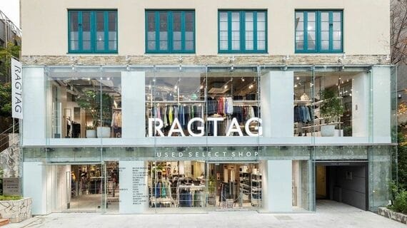 ラグタグは都市部を中心に現在20店舗を展開。「ヨウジヤマモト」「コム・デ・ギャルソン」といったデザイナーズブランドの取り扱いが強みで、ブランド古着のセレクトショップという立ち位置を確立した。原宿店のように訪日客のニーズも強く、売上高に占める比率は約4割にのぼる。