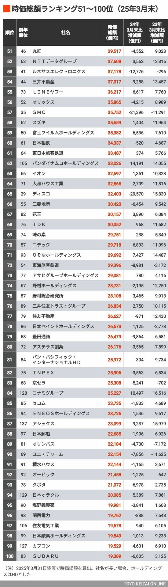 政治・経済・投資 【時価総額ランキングTOP100】1位は昨年から20兆円減少しても40兆円超え 4分で読める 公開日時:2025/04/07 07:00 山内 哲夫 東洋経済 記者 フォロー 1/4 PAGES 2/4 PAGES 3/4 PAGES 4/4 PAGES 51~100位
