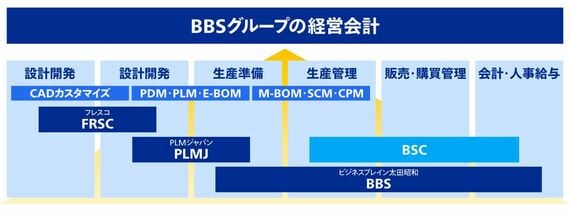 現在BBSグループは、M&Aなどを活用して事業ドメインを拡大し、グループの拡大を図っている。今回の製造業支援スキームに参画するのはBBSと同社傘下のPLMジャパン、そしてフレスコの3社だ。