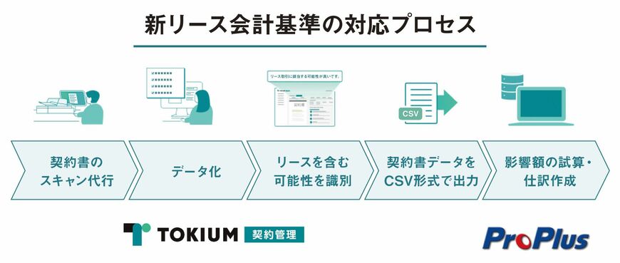 巽 プロシップでは新リース会計基準に対応した「ProPlus(リース資産管理ソリューション)」を提供しています。IFRS適用企業100社以上の実績やノウハウを基に新リース会計(割引計算、見積変更等)に求められる機能要件にきめ細かく対応し、正確な会計処理を実現します。TOKIUMのリース識別の機能と組み合わせれば、目視確認の負担や抜け漏れリスクも軽減されると考えています。