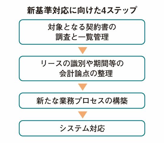 巽 4段階に分けて進めることをお勧めします。①対象となる契約書の調査と一覧管理、②リースの識別や期間等の会計論点整理、③新業務プロセス構築、④システム対応。このプロセスを前提に逆算したスケジュール管理が不可欠です。