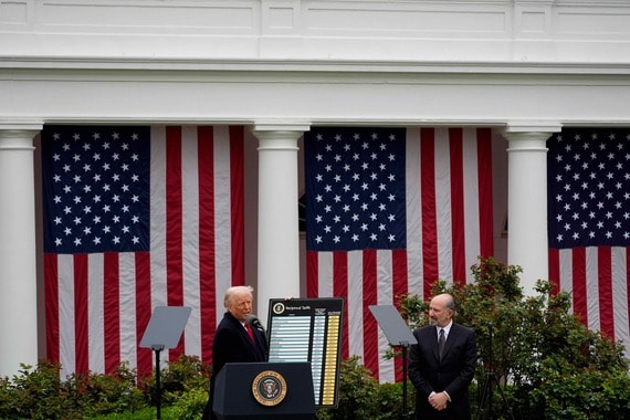 昨年のアメリカの輸入額に関税率を掛け算してみると、ざっと7654億ドル(約110兆円)。これだけの増税分をアメリカ国民と輸出業者が負担することになる。大雑把に言うと、世界に対して110兆円の増税をしました、ということだ。