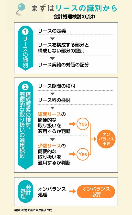 本村 まずは現在結んでいるリース契約を洗い出すことが必要です。前述した「隠れリース」にも注意します。最終的には支店や子会社も含むすべての契約を把握し、その中から、リース期間が短期間のものや、少額なもので、オンバランスする必要がないものをはじき出します。