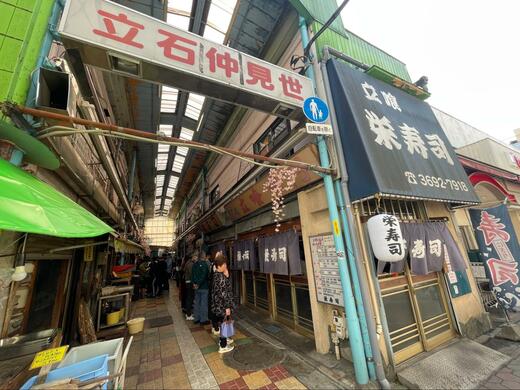 「立石仲見世」の駅側の入口には平日の昼間から2つの行列があった。並んでいる人たちの様子から「パチンコ屋かな」と思ったのだが、それらしき店はない。