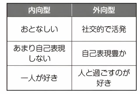 人間を大きく分類すると、内向型か外向型のどちらかになります。しかし、人の心をきれいに2つに分けるのは無理な話なので、当てはまらない部分も当然あります。