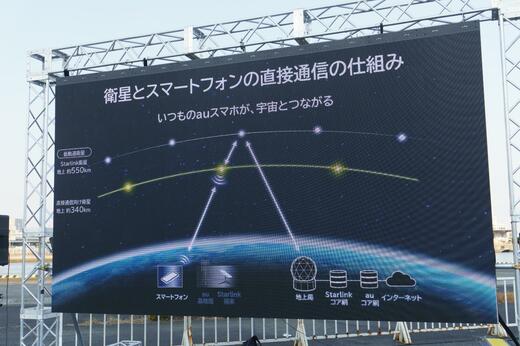 au Starlink Directでは、上空を周回するSpaceXの低軌道衛星が携帯電話の中継局として機能し、基地局のない場所でもスマートフォンを直接衛星に接続させる。従来の携帯電話は基地局の電波到達範囲内でしか使えなかったが、このサービスは空が見える環境であれば通信可能になる。