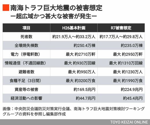 この中では、避難生活などで体調を崩して亡くなる「災害関連死」が最悪5万2000人に上るとの推計も初めて掲載した。この数値は、東日本大震災時の14倍弱に相当する。