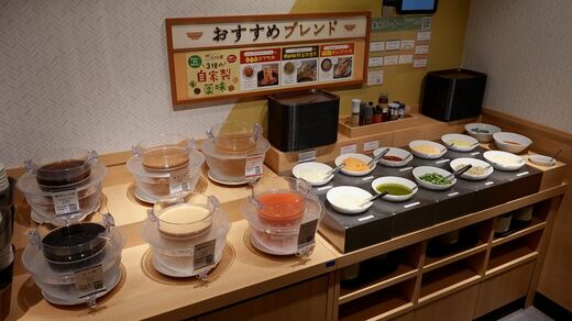 隣接する「薬味BAR」には、ネギ、紅葉おろし、豆板醤など15種類以上が揃っている。これらを組み合わせることで、「自分好みの味」をつくり出すことができるのだ。アレンジ可能な数は「5万通り以上」というから驚く。