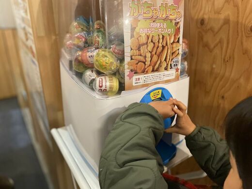 会計を済ませると、子ども(小学生以下)は無料でガチャガチャを回すことができる。「どこまで子どもファーストなんだ……!」と感心しきりである。