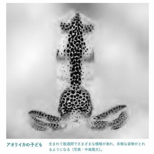 タコやイカの場合は、通常、卵は透明なので、生まれる前に卵の中から見えるものを学ぶ。そして親と同じような形で生まれる。