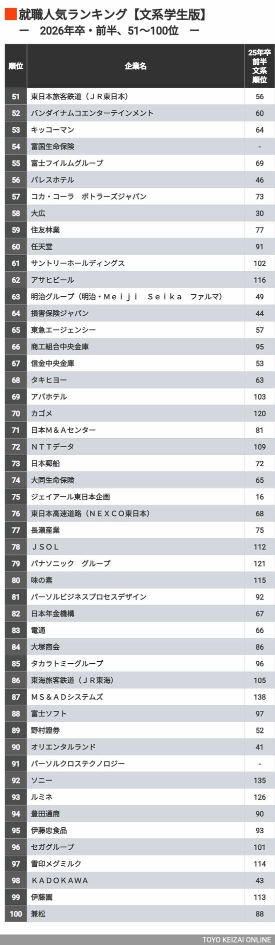キャリア・教育 #就職四季報プラスワン 前の記事 次の記事 2万人が投票した「就活生に人気が高い会社」ランキング…「男子・女子・文系・理系」TOP100社 4分で読める 公開日時:2025/04/21 05:00 東洋経済オンライン編集部 フォロー 1/9 PAGES 2/9 PAGES 3/9 PAGES 4/9 PAGES 5/9 PAGES 6/9 PAGES 7/9 PAGES 文系学生51〜100位 次ページが続きます 8/9 PAGES 9/9 PAGES