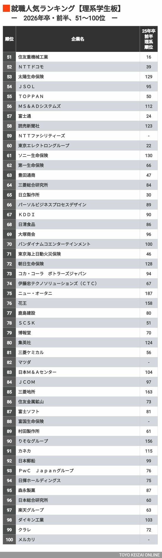 理系学生51〜100位