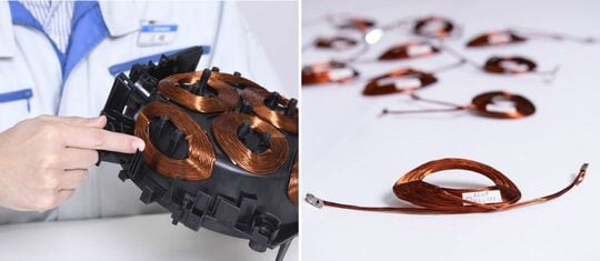一般には海外などから仕入れられることの多いと言われるIHコイルを、同社では自社工場で国内生産している。コイルの本数や形状を細かく調整できるのも、また複雑な形状のコイルを量産できるのも、自社生産だからこそ。