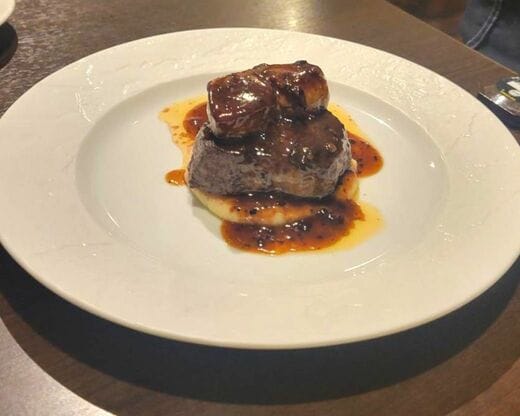 メニュー表におすすめとある「牛フィレ肉とフォアグラのロッシーニ~トリュフソース~」3980円(税別、以下同)。昔から「俺の」のシグネチャーとして知られる一品だ。