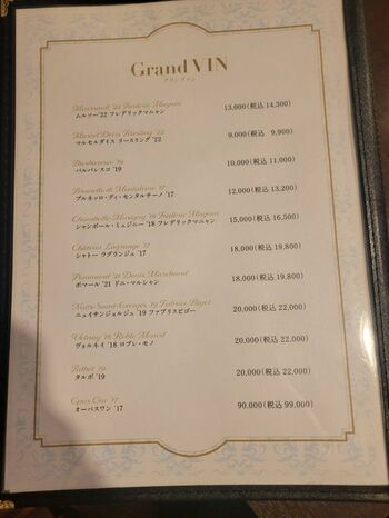 ワインの最高値はオーパスワンのボトルが9万円で置いてあり、いったいこの店で年に何本出るのか気になるところだが、お手頃から高級ラインまでラインナップの幅広さを見るとしっかりしたソムリエがいることがうかがえる。