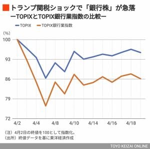 一夜にして世界が変わった――。日本銀行による利上げへの期待を背景に、好調に推移してきた銀行株。だが、4月2日にアメリカのトランプ大統領が「相互関税」を発表すると、瞬く間に「負け組セクター」へと姿を変えた。