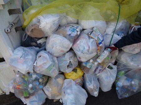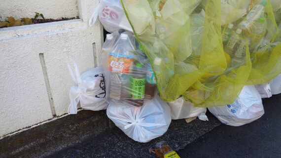 その作業中に印象に残ったのが、可燃ごみの袋の中に空のペットボトルが混入されていたり、飲料が入ったままのペットボトルが複数本袋に入れられて排出されたりしていたことだ。