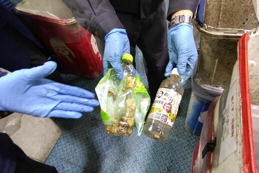 2つ目に、中に異物が入れられているペットボトルがはじかれる。その中でもよく見かけられるのが、タバコの吸い殻が入れられたペットボトルである。そのほかには、注射針が入れられているケースもある。このようなペットボトルは品質が損なわれるため、リサイクルができず焼却処分するしかない。