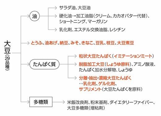 たとえば、下記は「大豆を使った加工品」を挙げたものです。