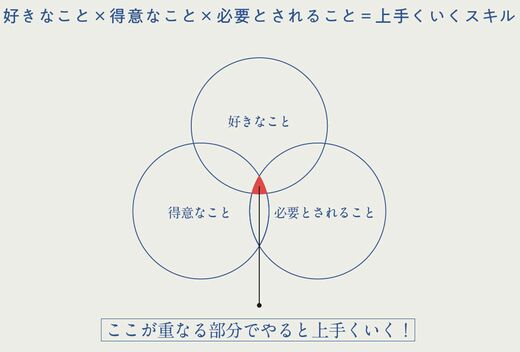 答えは自分の「好きなこと」と「得意なこと」、そして社会や他人から「必要とされること」の3つの要素のかけ合わせになっていることです。