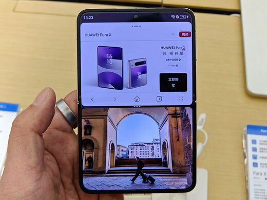 一方、Pura Xで2つのアプリを表示すると、それぞれが横長の長方形になるため、パソコンの画面を見ているようなサイズ感で表示できる。動画を表示しながらのSNSの閲覧も縦にスクロールする量が増えるものの、横方向に余裕ある表示ができるため窮屈感はない。横向きのスマートフォンを上下に2つ並べたような感じに表示ができるのである。