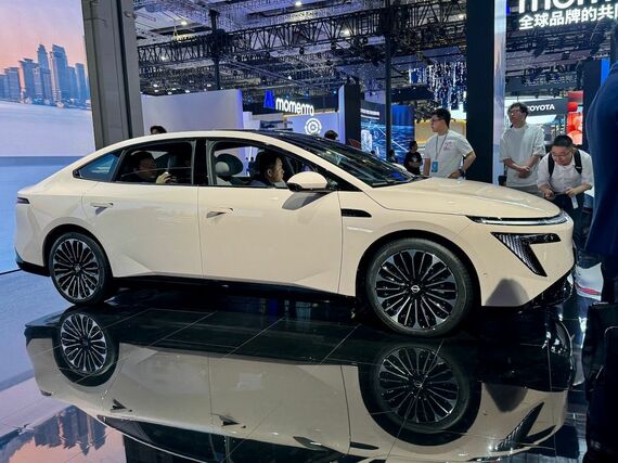 ニッサンが2024年にお披露目したBEVセダン「N7」は、2025年に中国での販売を目前に控えて、オート上海では数多くの車両が並べられていた。クルマを見ようと近づくと、若い係員が笑顔で寄ってきて「ぜひ座ってみて」などと話しかけてくる熱心さだ。