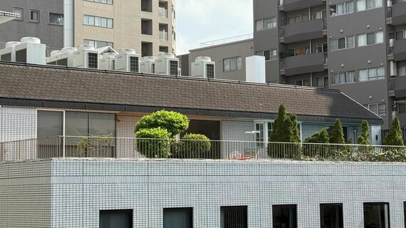 緑豊かな屋上庭園さながらの「五番町ナカノビル」の5階(記者撮影)