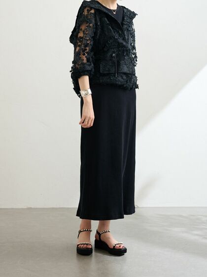 膝下スカートに合わせるなら、ドレッシーな装飾付き