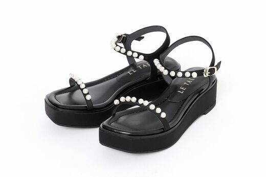 こちらは4センチのプラットフォーム型サンダルで、ストラップにパールをあしらったデザイン。アッパーにはクッション性があり、歩きやすさも考えられた1足です。