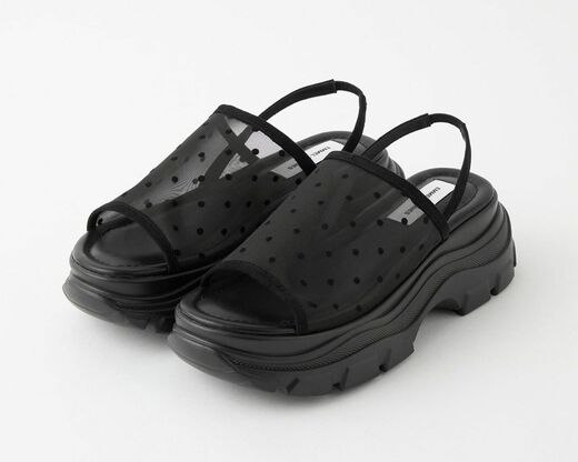 こちらは「女性の共感」を大切に、時代にフィットした新しいスタイルを提案するブランド「EMMEL REFINES(エメル リファインズ)」のサンダル。スポーティーなソールに対して、繊細なシアーチュールのソールの意外性が目を引く1足です。