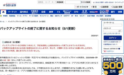 証券会社によっては、このようなページからのログインは、「バックアップ機能」などというサービス名称がついていることもあるが、むしろ「バックドア(裏口)」に近い。