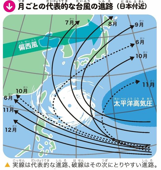 【台風の進路と起こりやすい災害】