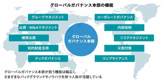また、グループ全体のビジネスを支えるためには、地政学リスクなどのグローバルレベルでのリスクマネジメントや、コンプライアンスの徹底が必要です。