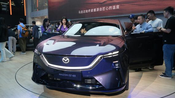 2017年度には中国で32万台を販売したこともあるマツダ。だが、2024年度は7.4万台と4分の1以下にまで落ち込んでいる。中国市場では急速な電動化が進展し、現在、新車販売台数のうち47%がEVやプラグインハイブリッド車(PHV)などの新エネルギー車(NEV)が占める。エンジン技術を強みとしてきたマツダは厳しい戦いを強いられている。