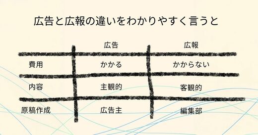 この質問の答えで意外と多いのが「お金を払って自分たちの出したい情報を掲載するのが広告。それに対してタダで情報を掲載してもらえるのが広報」というものです。お金を払うか、払わないか、という点に限れば、これも間違ってはいない説明といえます。