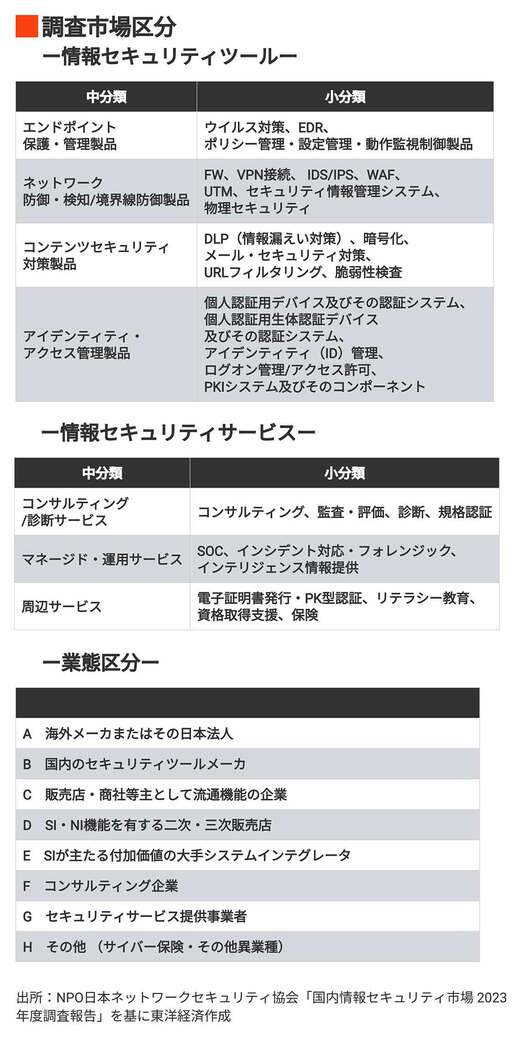 調査では、セキュリティツールを4つのカテゴリ「エンドポイント保護・管理製品」「ネットワーク防御・検知/境界線防御製品」「コンテンツセキュリティ対策製品」「アイデンティティ・アクセス管理製品」に分類している。